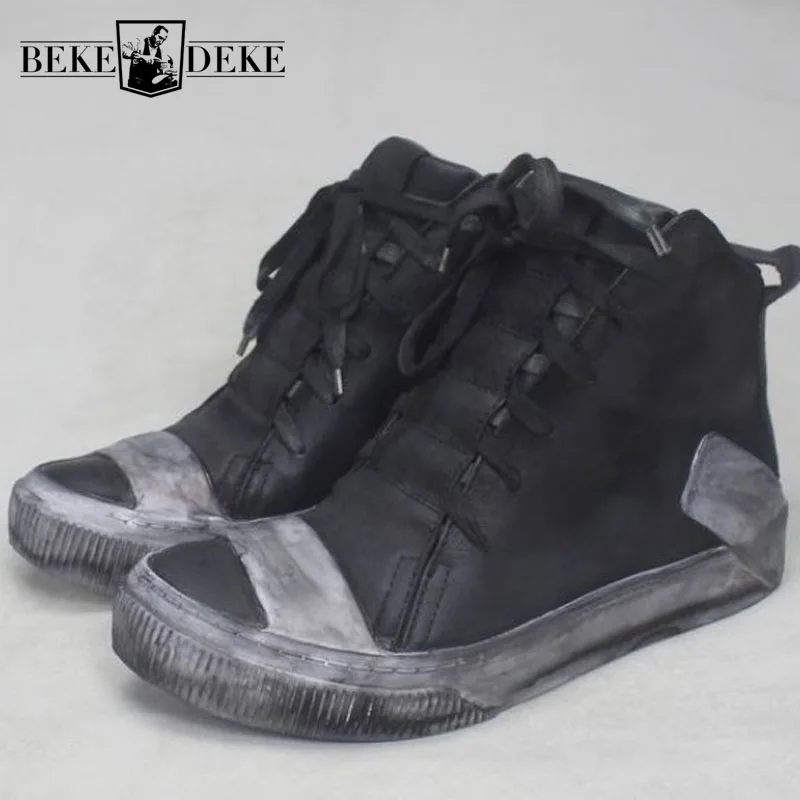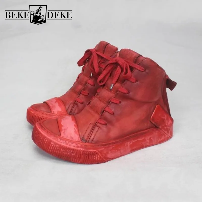 Handmade Luxury Mens High Top Cowhide Genuine Leather Boots Lace Up Vintage Trainers Sneakers Hip H