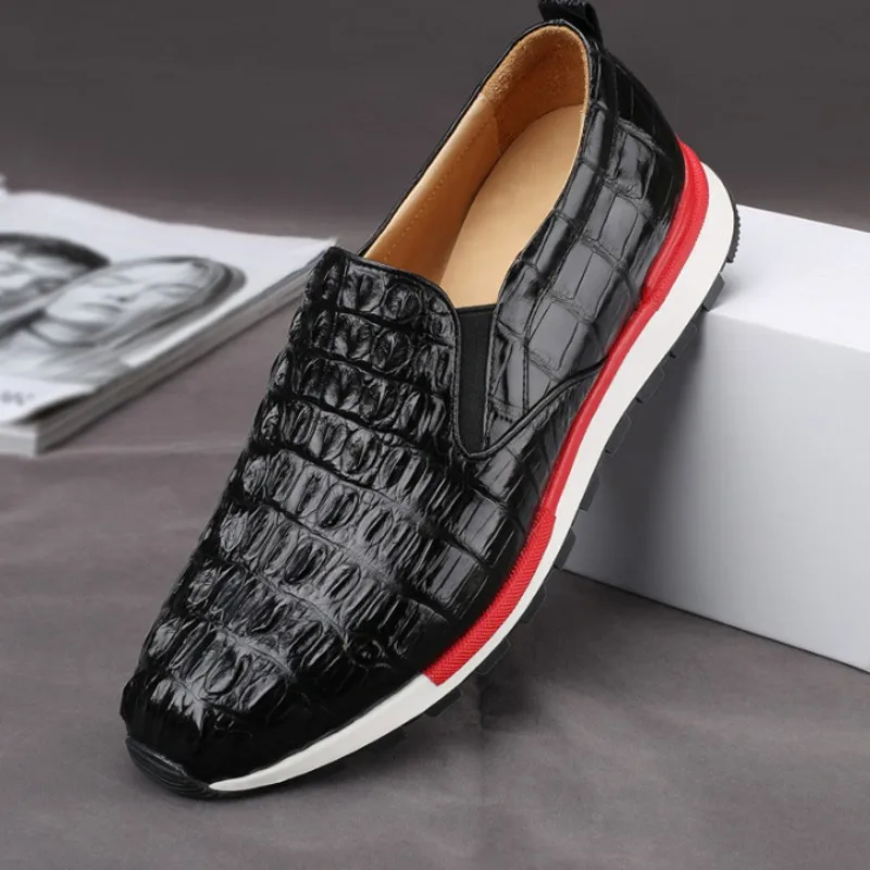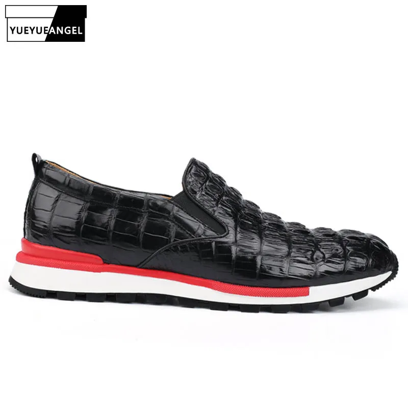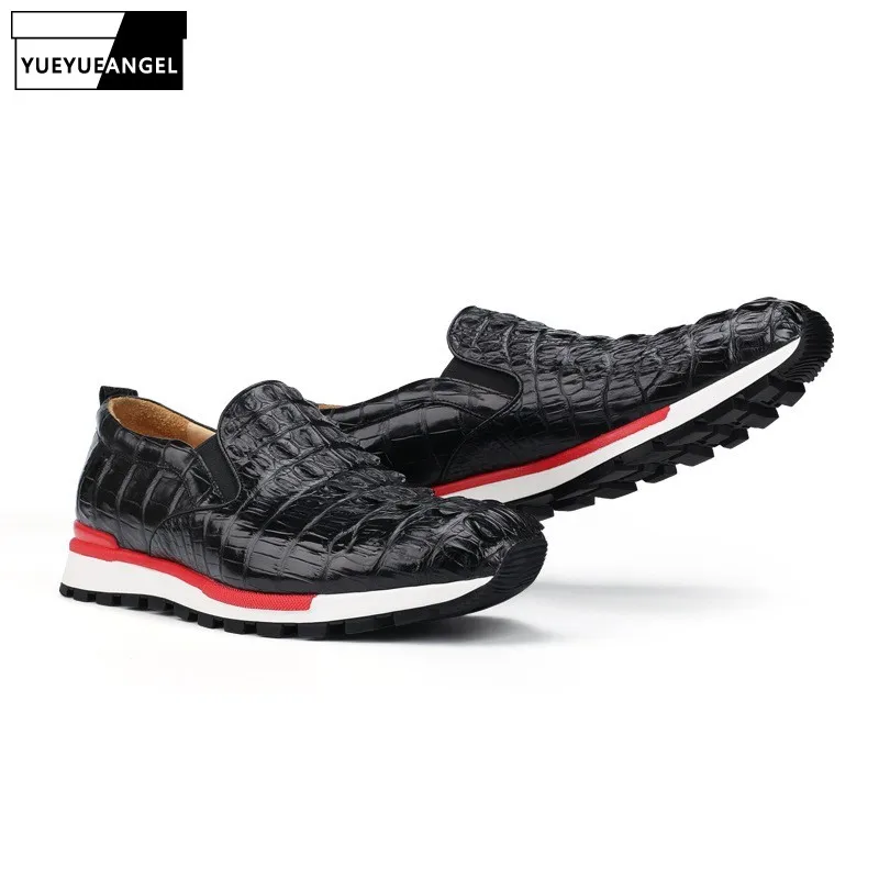 Luxury Men Travel Real Crocodile Leather Shoes Antiskid Platform Joggers Sneakers Loafers Slip On M