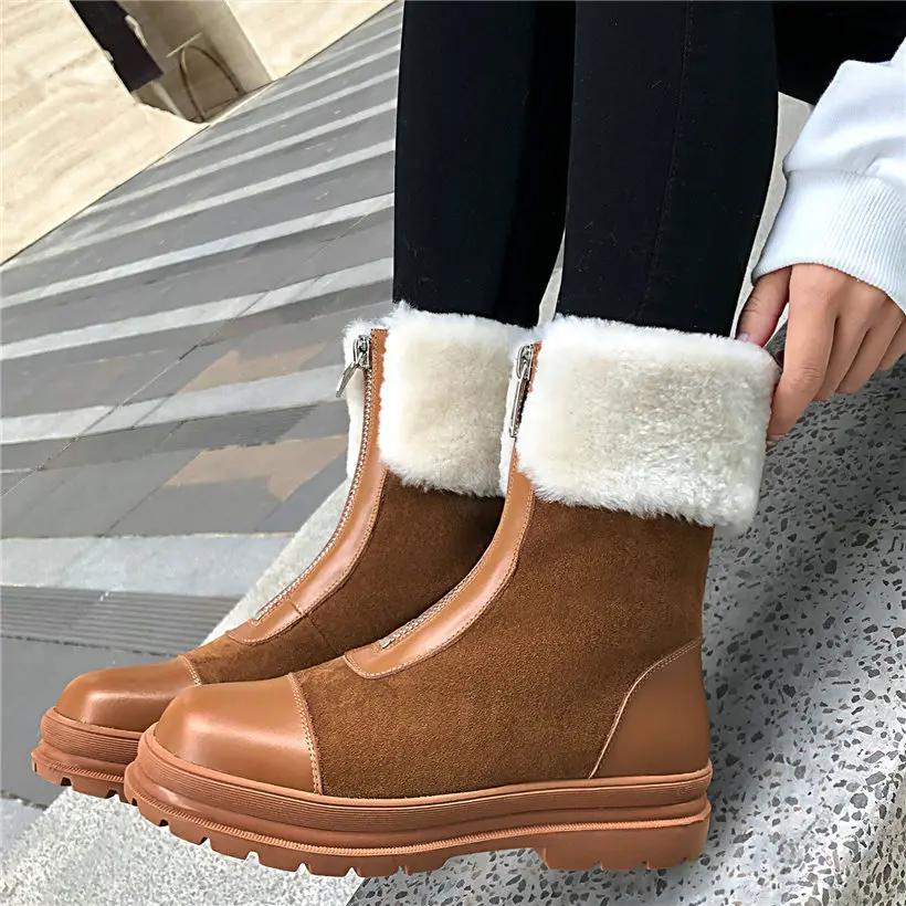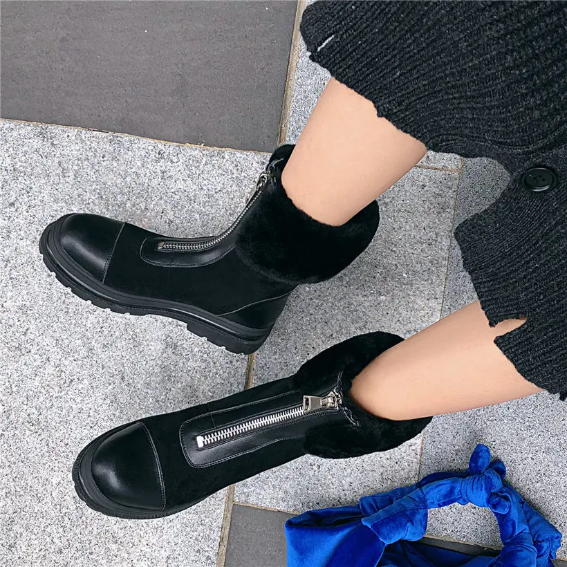New Goth Trainers Women Cow Suede Leather High Heel Military Riding Boots High Top Platform Round T