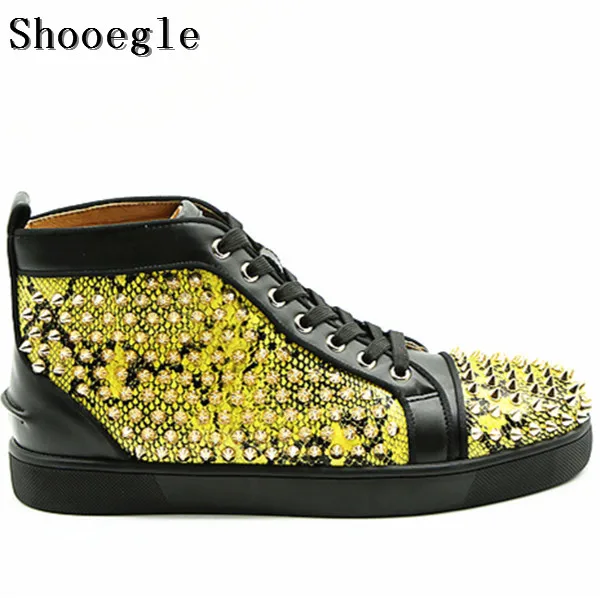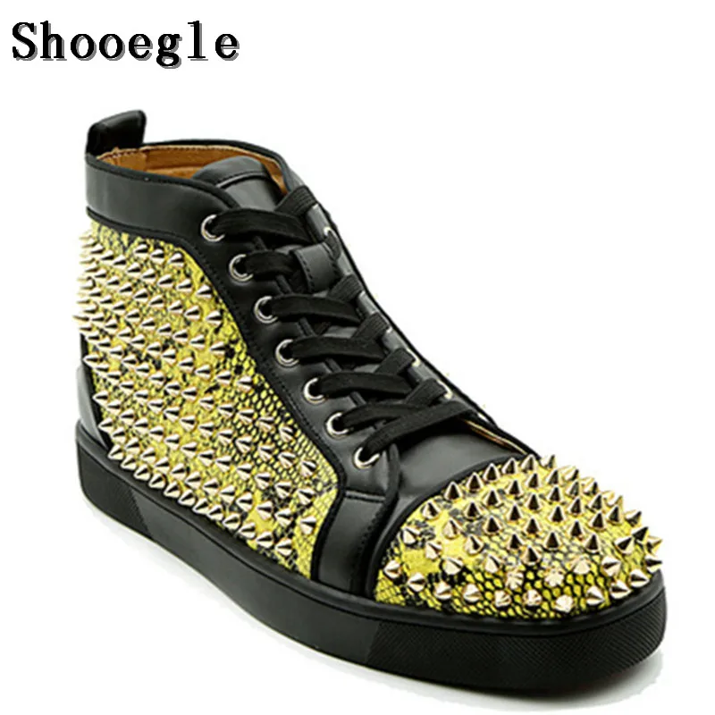 BEST QUALITY SHOOEGLE Fashion Men Sneakers Hightop Casual Shoes Men Spike Shoes Rivets Flat Leather Platform Men