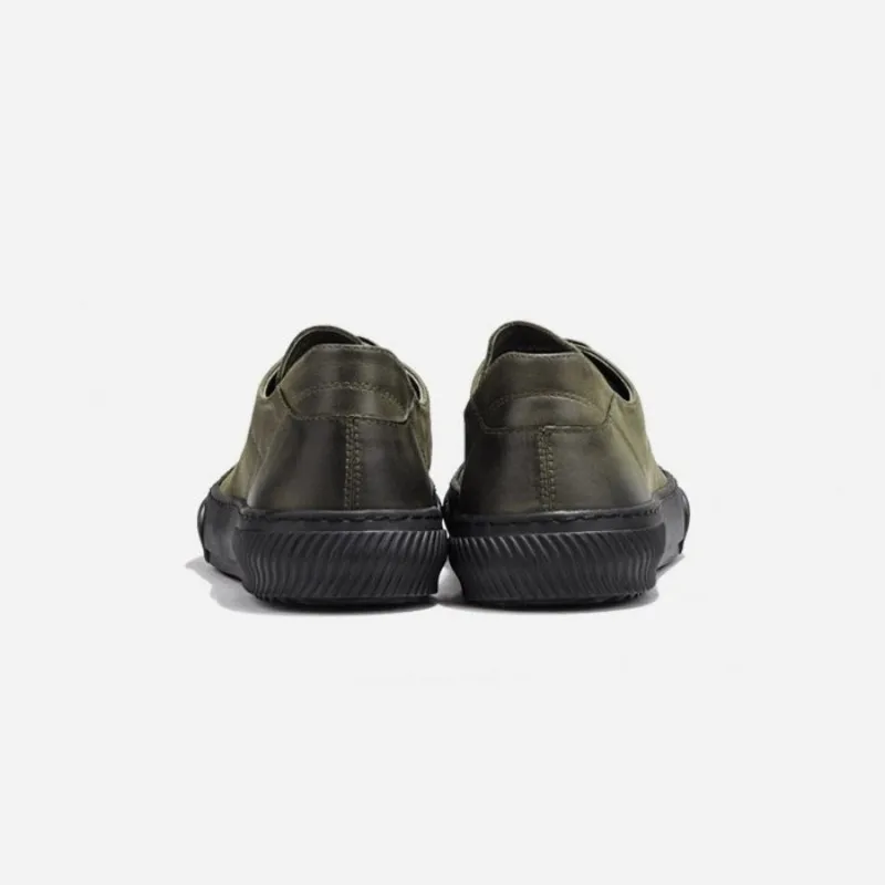 Vintage Men Army Green Military Shoes Brand Luxury Genuine Leather Flats Mocassin Homme Lace Up Sne