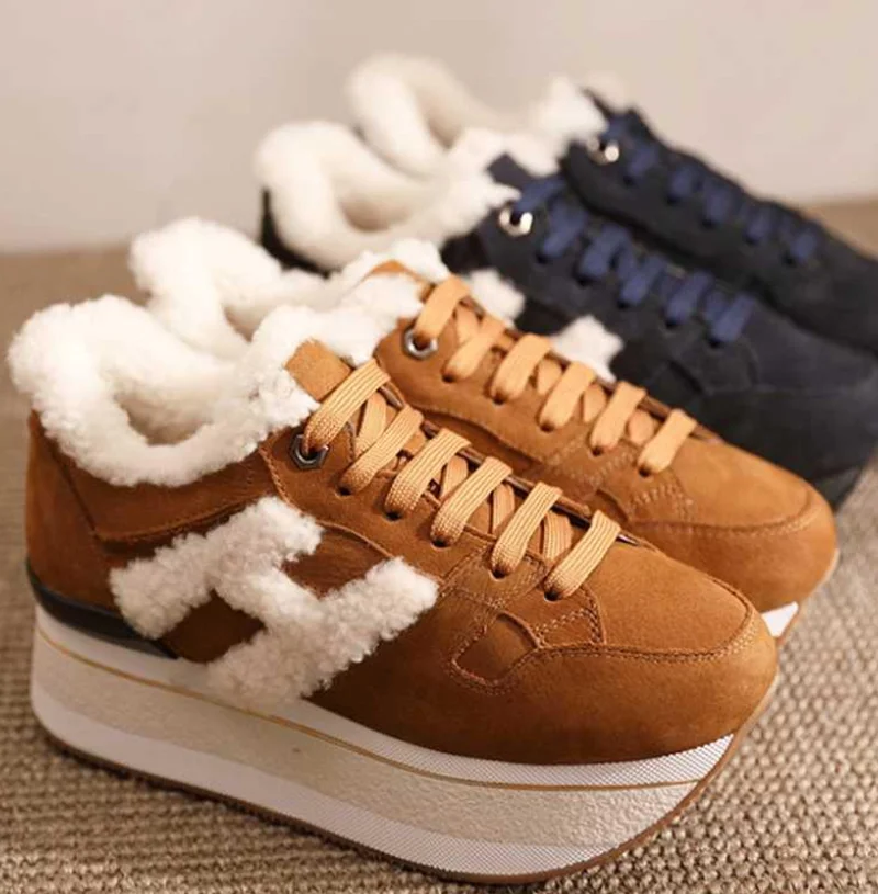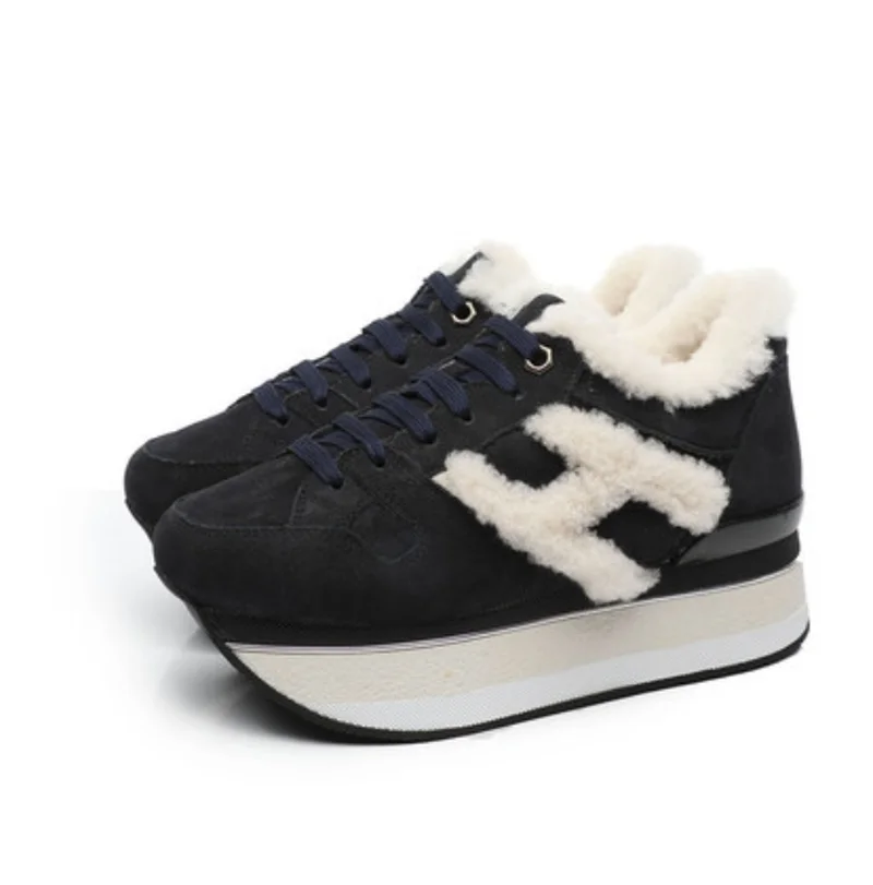 High Platform H Sneakers Womens Shoes Runway Sport Warm Fur Wool Winter Boots Lace Up Sneakers Cree
