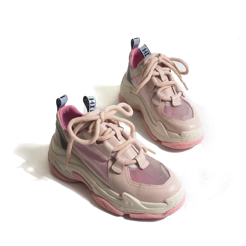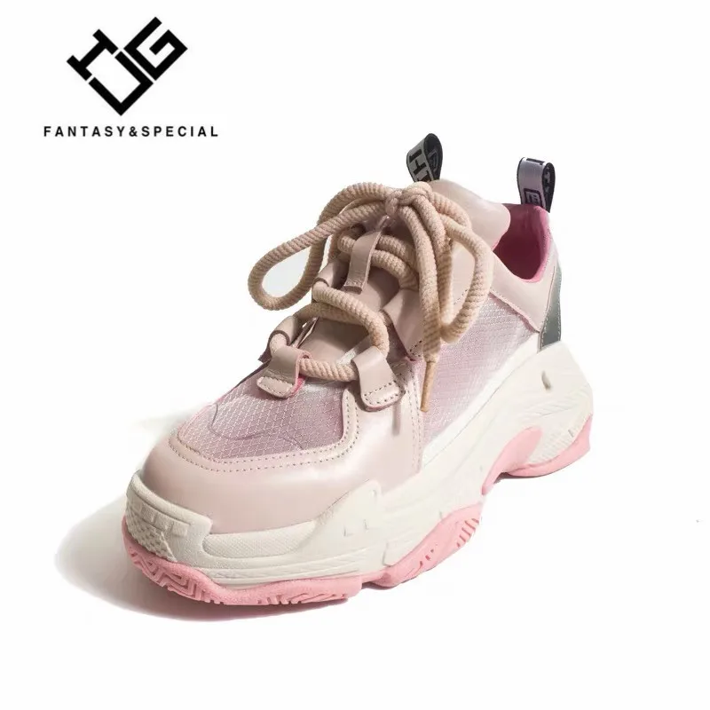 IGU Chunky Shoes Platform Creeper 2019 Summer Mesh Genuine Leather Thick Sole Zapatillas Mujer Plat