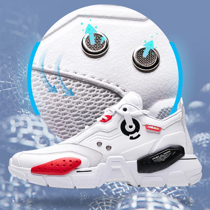 ONEMIX Men Sneakers Technology Style Leather Damping Comfortable Men Red Sport Running Shoes for Wo