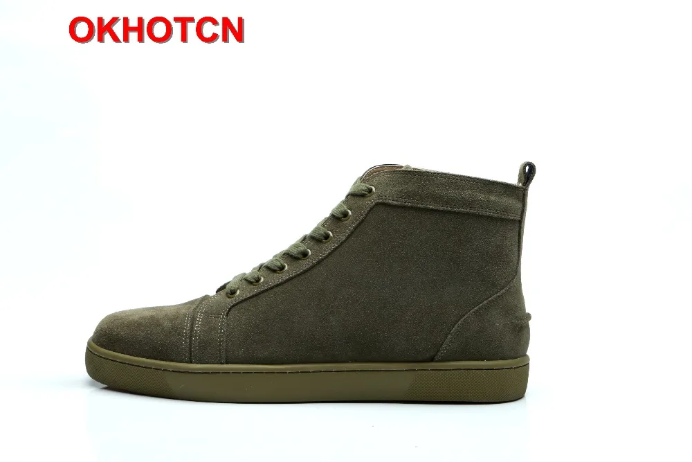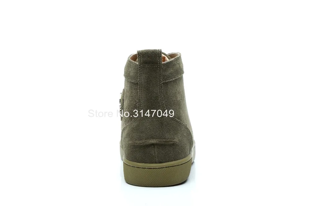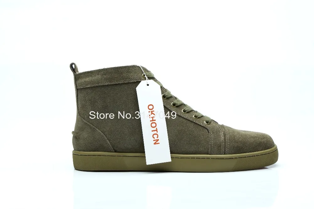 HIGH QUALITY Lace Up Leather High Top Sneakers For Men Solid Army Green Luxury Shoes Breathable Suede Men'S Flat
