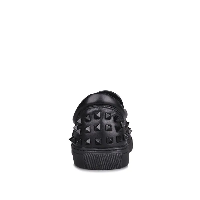 Street Men Loafers Genuine Leather White Sneakers Breathable Rivet Casual Round Toe Slip On Flat Sh