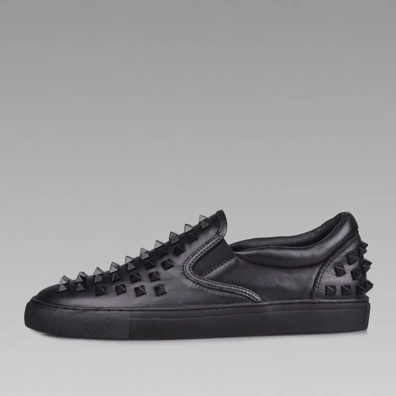 ORIGINAL Street Men Loafers Genuine Leather White Sneakers Breathable Rivet Casual Round Toe Slip On Flat Sh